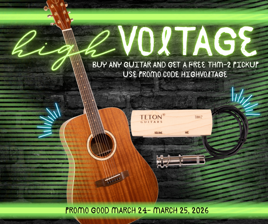Get a FREE pickup with the purchase of any guitar! Use code HIGHVOLTAGE at checkout.