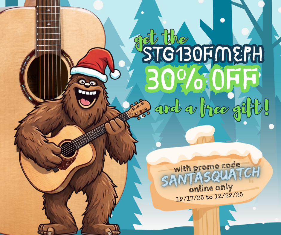 With the holidays fast approaching, treat yourself with 30% off our Grand Concert 130 series guitar which has a solid spruce top, flame maple back and sides, and purple heart binding. Plus we'll also include a FREE GIFT and FREE SHIPPING!
